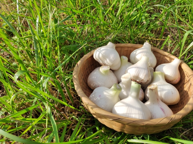 にんにくに含まれるアリシンはビタミンB1と結合してエネルギー代謝を促進する働きがあります。また抗酸化作用があり、抗菌やがん細胞の増殖を阻害、悪玉コレステロール低下、血圧低下作用など健康増進に役立つことが期待されています。